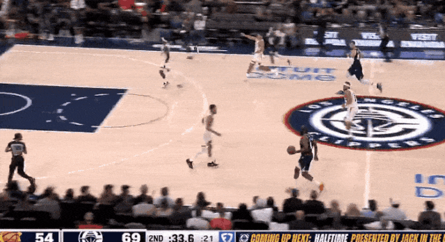 然后就有了登哥半場(chǎng)前連續(xù)超遠(yuǎn)3分的瘋狂表現(xiàn)