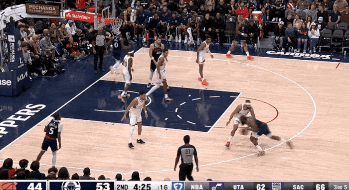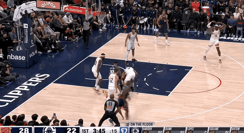 楊瀚森用一個(gè)瀚地拔蔥的單手暴扣再得2分,這也是楊的第一個(gè)運(yùn)動(dòng)戰(zhàn)得分
