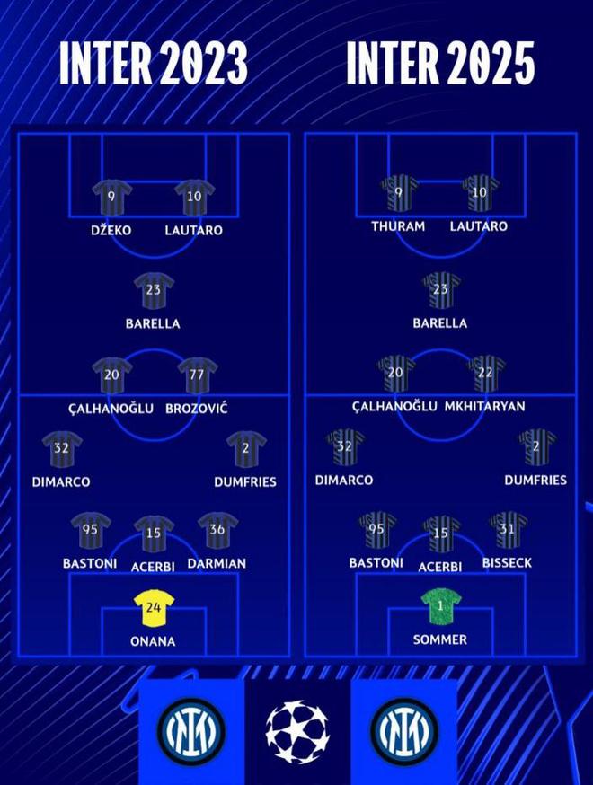 3年兩進決賽!??歐冠官方:國米兩套陣容,更喜歡哪一年?
