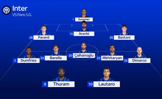 三年兩進決賽,歐冠官方列國米首發(fā)陣容對比:勞塔羅等7人不變
