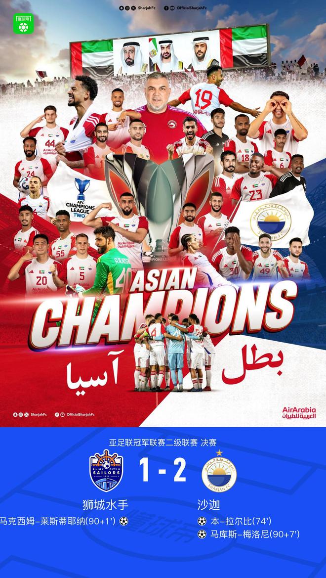 沙迦2-1獅城水手奪亞冠二級聯(lián)賽冠軍,本-拉爾比、梅洛尼建功